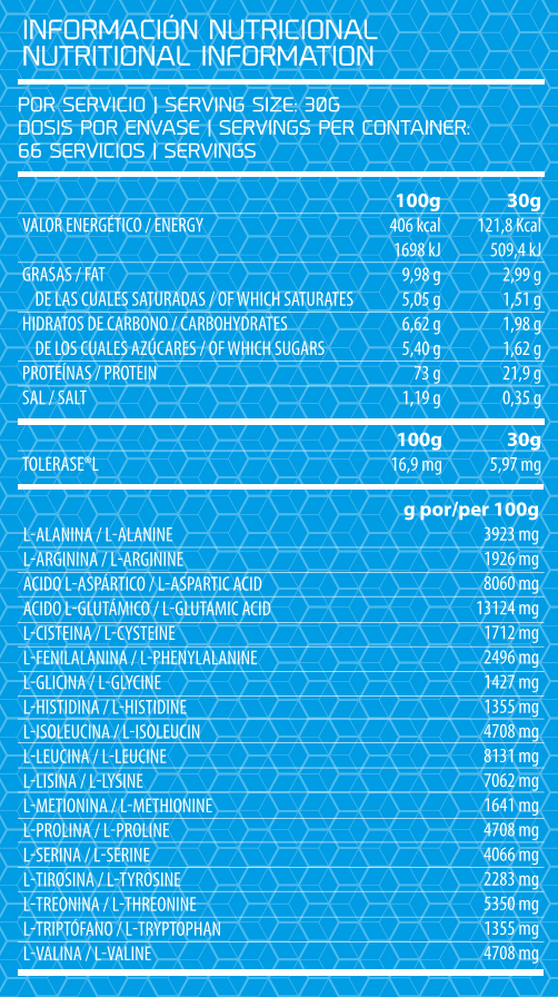 Concentrado de Proteína de Soro de Leite, Aromas, Aroma Natural, Edulcorante (Sucralose), β-Galactosidase [Lactase (Tolerase® L)]* e Edulcorante (Neohesperidina DC).